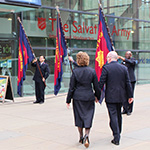 On Monday 7 August 2023, Salvation Army officers and employees welcomed General Lyndon Buckingham and Commissioner Bronwyn Buckingham (World President of Women’s Ministries) to International Headquarters (IHQ, London) with rapturous applause